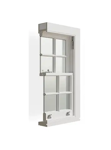 Concealed brush seals integrated into the staff and parting beads. This system virtually eliminates rattles and draughts without altering the window's appearance.